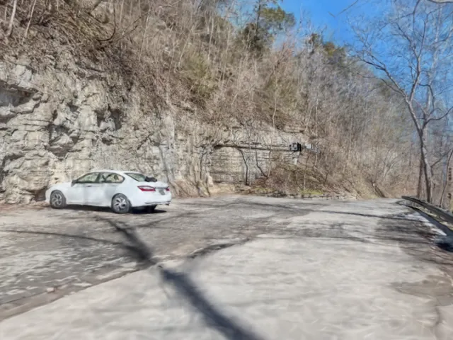 テネシー州ナッシュビル近くのハーペス・リバー州立公園のナローズ・オブ・ザ・ハーペス沿いの通りからのガウスの飛び散り登山道は凍結のため通行止めでした․