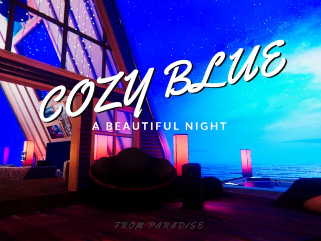 「Cozy Blue」は theonedream が制作した VRChat ワールドです。Quest 対応。推奨定員 16 人(最大 32 人)。2025年12月7日 公開。2025年11月28日 更新。
