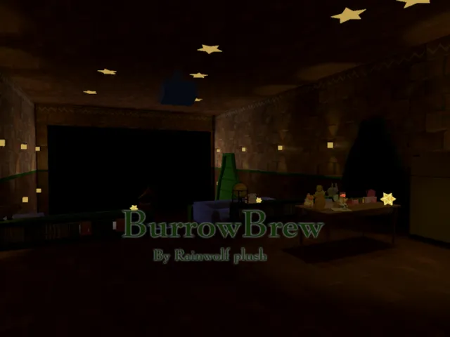 「BurrowBrew」は Rainwolf plush が制作した VRChat ワールドです。Quest 対応。推奨定員 16 人(最大 45 人)。2025年12月14日 公開。2026年1月11日 更新。
