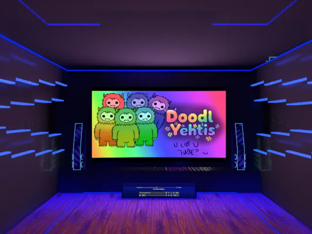 「Blue DOOM's Movie Room (Updated 3⁄28⁄26)」は ScriptWizard が制作した VRChat ワールドです。Quest 対応。推奨定員 8 人(最大 25 人)。2026年3月28日 更新。タグ: tv、popcorn_palace_2、popcorn_palace、movies、theater。