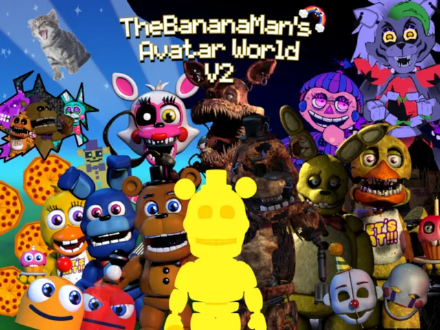 バナナマンのアバター ワールドへようこそ このワールドは 2024 年の初めから開発され、数か月にわたって大きく進化しました このワールドには次のアバターが含まれています - Fnaf ワールドのアバター - 通常の Fnaf アバター - レトロ アバター - その他のアバターとその他多数のアバター この世界は人々が楽しんで楽しむために私 (バナナマン) によって作成されました。ポスター、アバターのアイデア、世界コンセプトなどを備えたクレイジーラビット․ご質問がございましたら、お気軽に Discord サーバーに参加するか、バナナマン (私) に質問するか、「A Crazy Rabbit is in the world」に質問してください。
