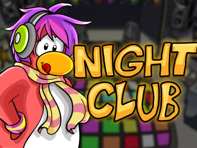 ClubPenguin のナイトクラブ くつろいだり、ゲームをしたり、ビデオを鑑賞したりしてください