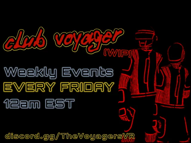 (この世界は WIP です) 8Bitw0nder によって作成されました Club Voyager へようこそ The Voyagers の公式ワールド、Daft Punk への VRChat トリビュートです․私たちの目標は、ダフト パンクとその音楽遺産への愛と感謝をさらに広め、ファンに同じ考えを持つ人々と出会える安全なスペースを提供することです。毎週金曜日午前 12 時 (EST) に毎週イベントを開催します。Discord & VRChat グループに参加してイベントの最新情報を入手してください。 discord․gg⁄TheVoyagersVR vrc․group⁄DFTPNK․6052