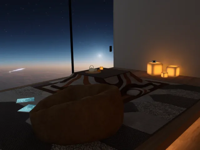 「Sleeping in Space」は arimia が制作した VRChat ワールドです。PC 専用。推奨定員 16 人(最大 20 人)。2025年1月10日 公開。2026年3月8日 更新。タグ: sleep、home、space、chill。