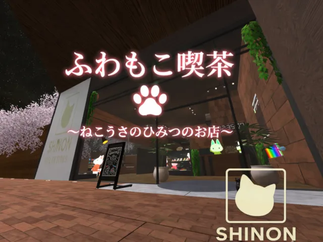 「ふわもこ喫茶 ~ねこうさのひみつのお店~」は shinon@(しのん) が制作した VRChat ワールドです。Quest 対応。推奨定員 20 人(最大 20 人)。2026年4月12日 更新。タグ: chill、cafe、quest、spring、sakura。