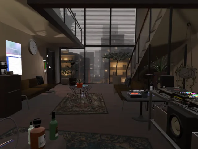 ホームワールド用途や、少人数での談笑などにどうぞ。動画プレーヤー、QVペン、ミラー、DJブース、シーシャ、コーヒーあり。簡単な改変用ギミックもあります。