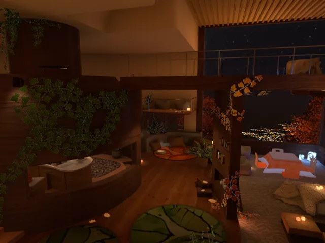 「simon cozy」は しもんも が制作した VRChat ワールドです。PC 専用。推奨定員 16 人(最大 32 人)。2025年12月18日 公開。2025年12月17日 更新。タグ: onsen、chill、cozy、sleep、room。