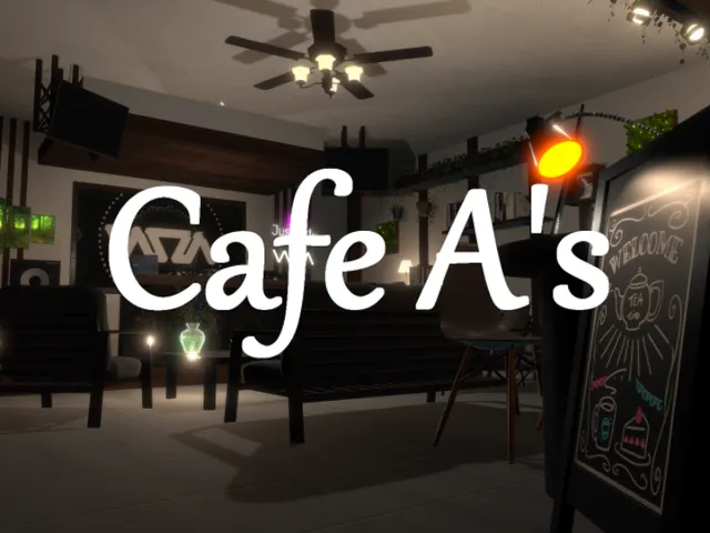 「Cafe A's」は ささはら。 が制作した VRChat ワールドです。PC 専用。推奨定員 16 人(最大 32 人)。2026年3月9日 公開。2026年3月16日 更新。タグ: dj、cafe、chill。