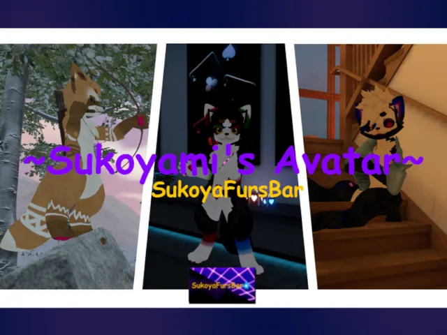 「~Sukoyami's Avatars~」は SukoyamiFurry が制作した VRChat ワールドです。Quest 対応。推奨定員 16 人(最大 25 人)。2026年2月2日 公開。2026年3月6日 更新。