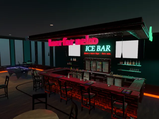 ICE BAR˸ холодное веселье и горячие напиткиǃ Замри от восторгаǃ Добро пожаловать в Ice Bar - место‚ где температура падает‚ а градус веселья только растётǃ Готов к самому стильному отдыху? Ice Bar - это твоё новое любимое место в VRChat ‚ где можно расслабиться и оторваться по полнойǃ Бар с алкоголем˸ Выбирайте любой напиток от ледяных коктейлей до классики․ Бильярд˸ Крутой бильярд для жарких партий с друзьями․ Атмосфра праздника˸ зажигательные треки‚ стильный дизайн и всегда хорошее настроениеǃ