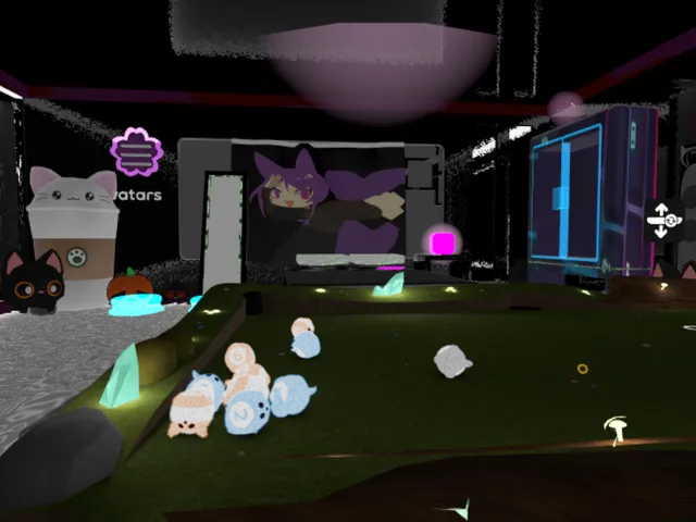 これは私の 2 番目のアバターの世界です。楽しんでいただければ幸いです。ベッド、静かな雨、音楽プレーヤー、ペンなどがあります。新しく更新されたハロウィーンのテーマです。クエストとPC用のプールも追加されました。この世界を誰でもアクセスできるようにしたいです․この世界にもユーザー インターフェイスがあります =)友達とビリヤードをしたり、私のリリック ビデオや 2010 年の曲を楽しんだりしてください․かわいいコーヒー猫と優しい雨が降る世界․小さなボールになって丸まって、私の世界でくつろいでください․