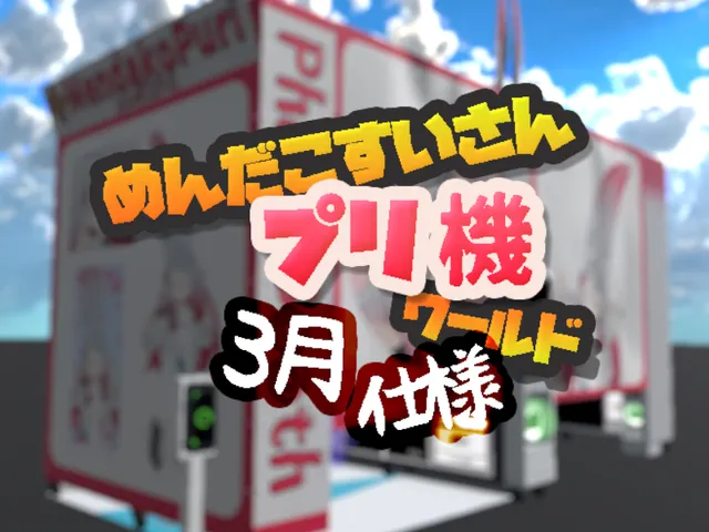 「めんだこすいさんプリ機ワールド(4月)」は suisansan が制作した VRChat ワールドです。PC 専用。推奨定員 19 人(最大 60 人)。2025年9月19日 公開。2026年3月25日 更新。タグ: photo、chill、puri。