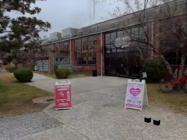 工場の外側のガウススプラット․宣伝文句「フランクリンのザ・ファクトリーへようこそ。私たちのコミュニティの最高の人材がひとつ屋根の下に集まります。フランクリン、テネシー州の歴史の礎である魅力的な歴史的建物が、ショッピング、ダイニング、イベントなどの活気ある拠点に生まれ変わりました。」フランクリンの鼓動を感じ、地元の精神と真につながることができる場所です。