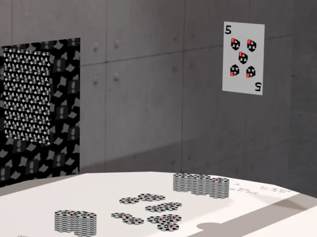 「인디언 포커」は rino0301 が制作した VRChat ワールドです。PC 専用。推奨定員 2 人(最大 8 人)。2025年5月14日 公開。2026年3月17日 更新。タグ: 인디언포커、게임、보드게임。
