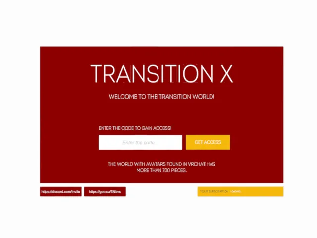 「Transition X」は Transition X が制作した VRChat ワールドです。Quest 対応。推奨定員 16 人(最大 32 人)。2026年3月6日 更新。