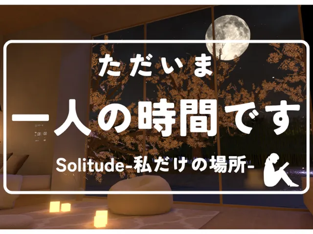 「Solitude-私だけの場所-」は じゅうべえ が制作した VRChat ワールドです。PC 専用。推奨定員 1 人(最大 1 人)。2026年4月18日 更新。タグ: chill、sleep、book、sakura、sound。