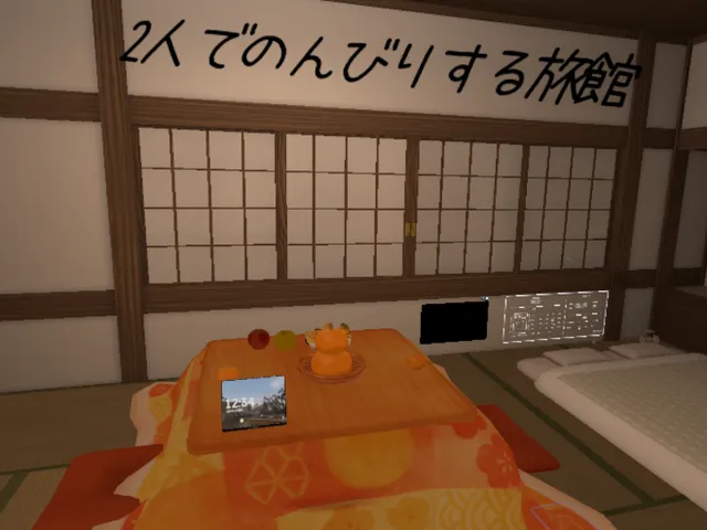 「2人でのんびりする旅館」は しもやけ@ が制作した VRChat ワールドです。Quest 対応。推奨定員 2 人(最大 2 人)。2025年12月16日 公開。2026年3月17日 更新。タグ: chill、japan。