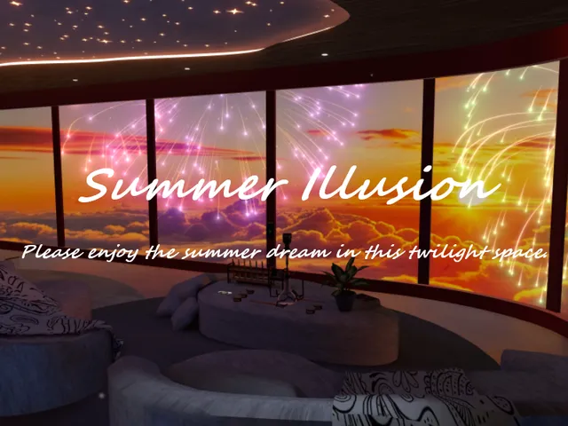 「Summer Illusion」は Stylish@Ship2 が制作した VRChat ワールドです。Quest 対応。推奨定員 20 人(最大 25 人)。2025年9月1日 公開。2026年4月17日 更新。タグ: chill、sleep、home、cozy、color_my_world。