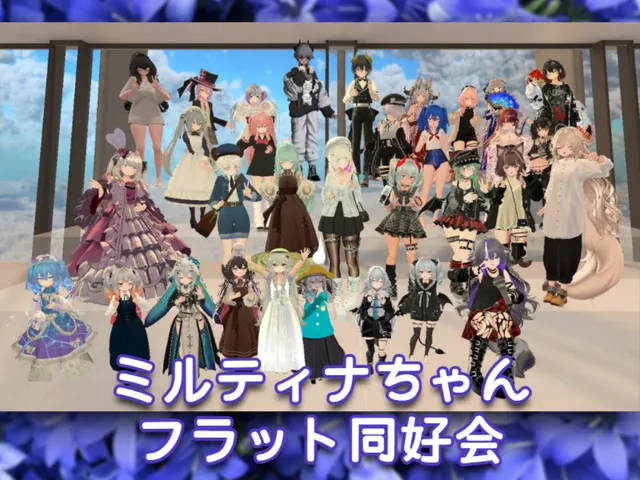 「ミルティナちゃんフラット同好会集会所」は Yuni(ゆに) が制作した VRChat ワールドです。Quest 対応。推奨定員 40 人(最大 80 人)。2025年6月17日 公開。2026年4月5日 更新。