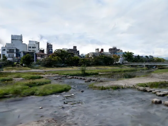 Gaussing Splatting、ガウシアン・スプラッティングで作成した、京都の鴨川デルタです。