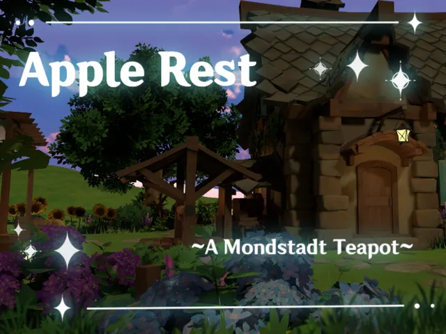 「Apple Rest - A Mondstadt Teapot」は AlekStahl が制作した VRChat ワールドです。Quest 対応。推奨定員 16 人(最大 24 人)。2026年4月13日 更新。