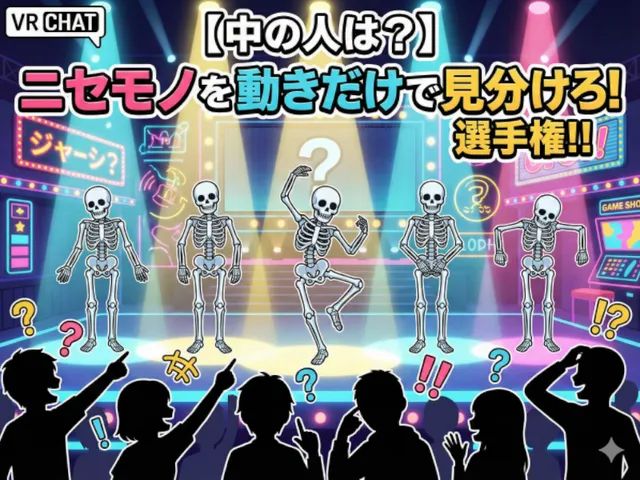「【中の人は?】ニセモノを動きだけで見分けろ!選手権!!」は なごなご が制作した VRChat ワールドです。PC 専用。推奨定員 16 人(最大 32 人)。2026年1月27日 公開。2026年2月3日 更新。タグ: game。