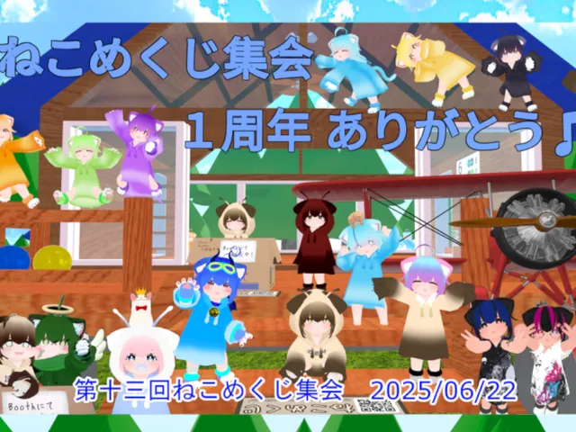 「ねこめくじ集会」は 青タイツ=狂クー_Kuruku が制作した VRChat ワールドです。Quest 対応。推奨定員 32 人(最大 60 人)。2024年6月27日 公開。2026年3月23日 更新。