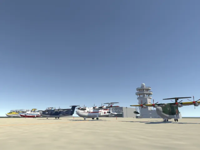 海上空港で飛行機に乗れるワールドです! B52導入しました! 水上機はちゃんと離着水も可能です ワールド入って左側格納庫前広場にも機体あります。
