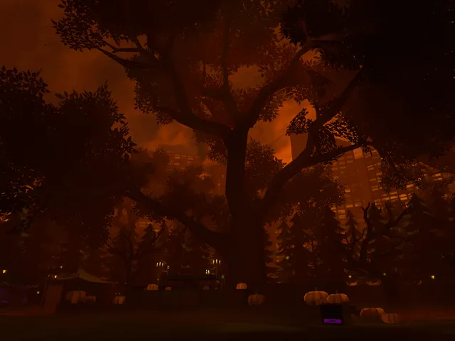 真夜中の地区の秋バージョン。これは大規模なハロウィーンパーティーの前後に行われると考えてください。準備中か撤収中です。いくつかのギミックはまだありますが、真夜中の地区ほどではありませんが、アップデートは受信されません