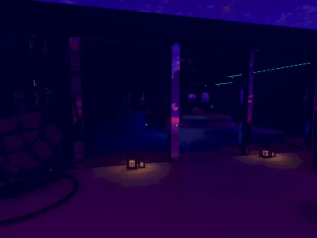 「Violet Nights V2」は Skaveny が制作した VRChat ワールドです。Quest 対応。推奨定員 9 人(最大 18 人)。2026年4月20日 更新。タグ: no_lewd、sleep、cuddle、relax、tv。